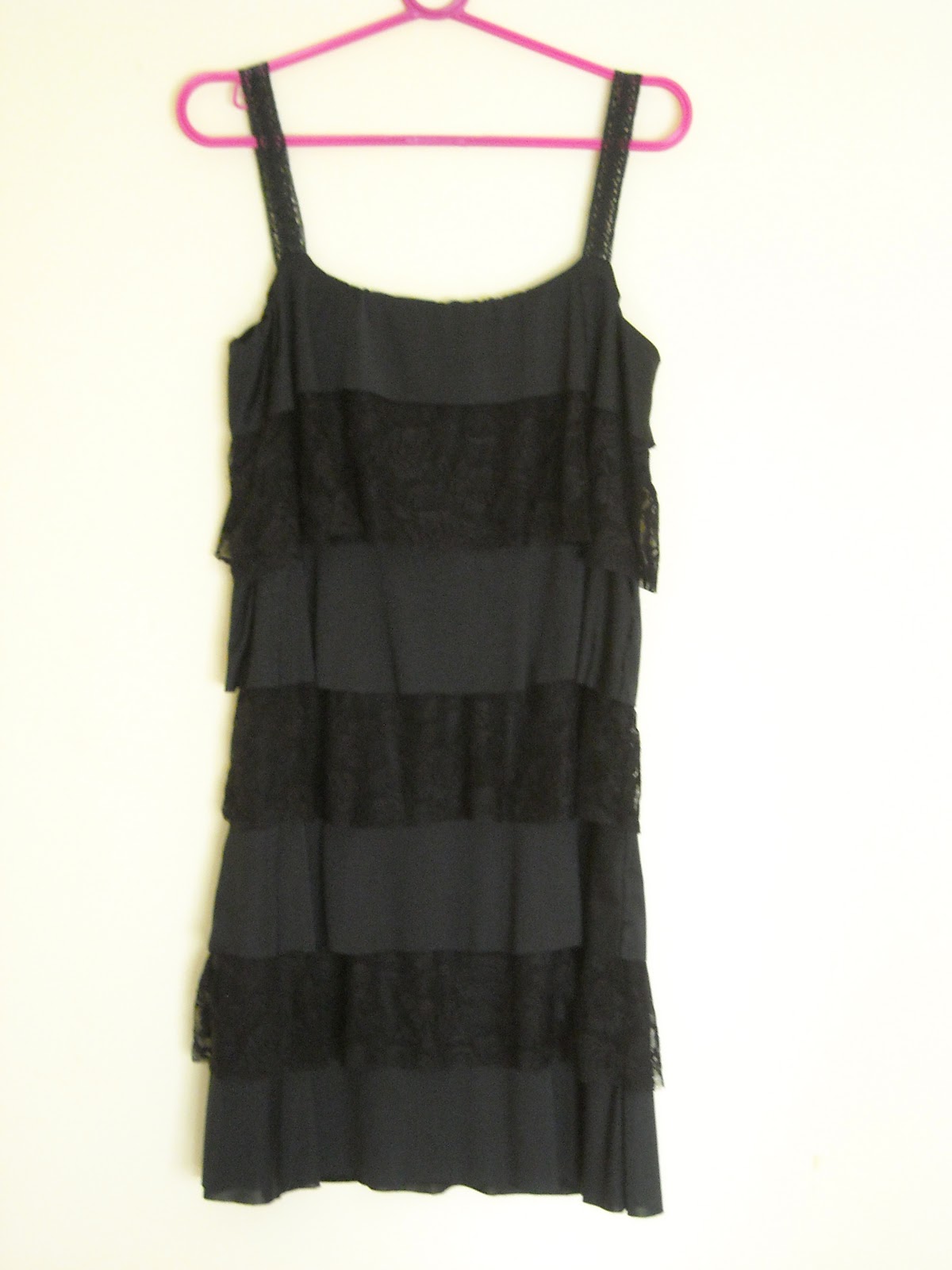 Para los breteles compré un metro de entredos de algodón y lo teñí con media cucharadita de anilina color negro azabache diluída en agua caliente. Sumergí el entredos, lo dejé aproximadamente media hora, después lo enjuagué varias veces con agua fría y por último con un chorrito de enjuague para ropa. Quedó super negro! Después fuí midiendo con la prenda puesta cuál era el largo justo para el bretel.